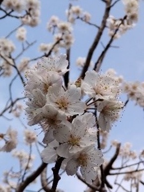 サクランボの佐藤錦。3月初めに花が咲き、小さな実ができてきました。大きなサクランボがとれるよう、今年は摘果をしてみました。