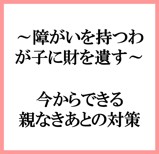 ・~障がいを持つわが子に財を遺す~今からできる親なきあとの対策