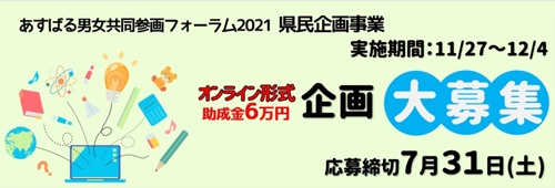 「あすばる男女共同参画フォーラム2021」県民企画事業 企画団体募集について