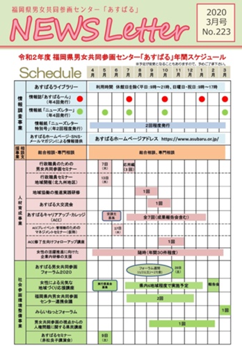 11月23日(土・祝)、「あすばる男女共同参画フォーラム2019」を開催しました。女子差別撤廃条約が国連で採択されてから40年目の節目の年にあたる今年は、この40年間の世界の動きと日本の男女共同参画の歩みを学び、次世代につなげたいという思いを込めて「歩みをとめず 未来へつなぐ~誰もが自分らしく活...